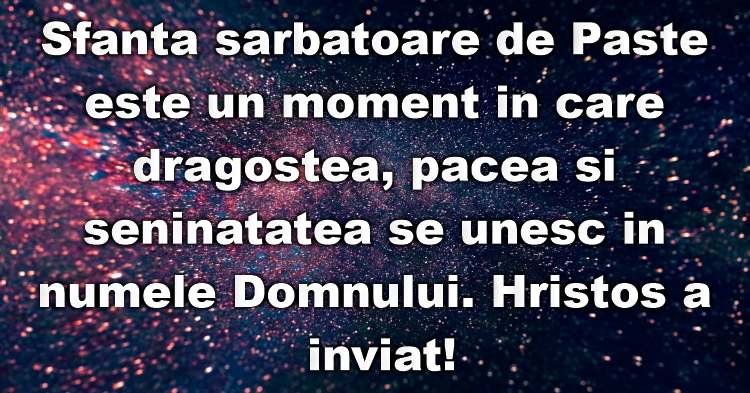 Sfanta sarbatoare de Paste este un moment in care dragostea, pacea si seninatatea se unesc in numele Domnului. Hristos a inviat!